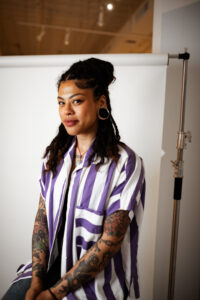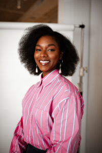 Through her practice, she’s established an intuitive process that allows her to alchemize her imagination into a cinematic universe. She believes valuable storytelling builds on an intimate connection between an artist’s vision and the parallel of their lived experiences and ancestral memory.