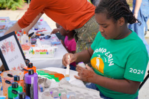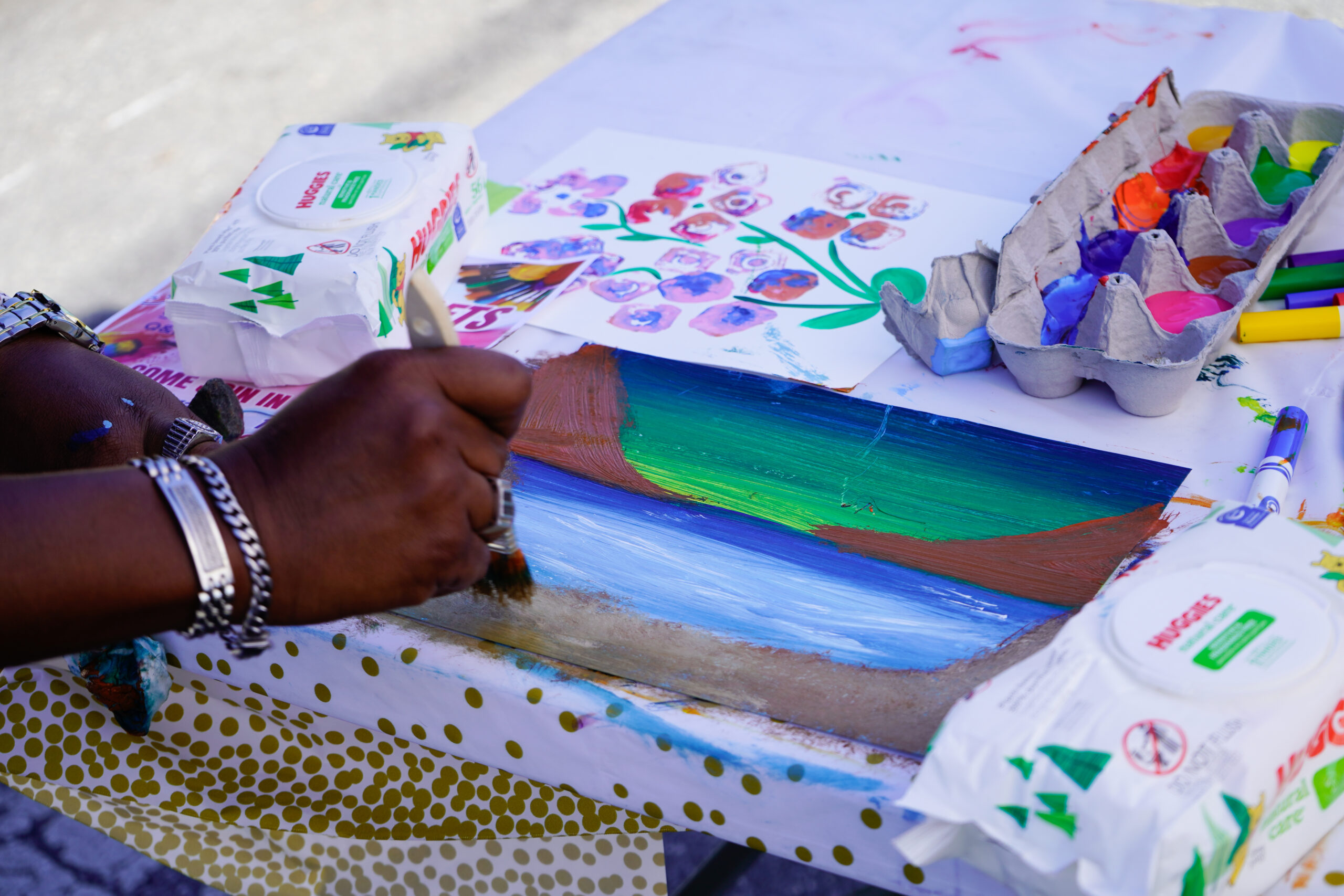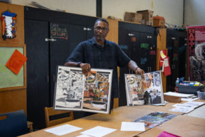 Mural Arts has organized an ongoing “art hub” program, with periodic community events in various public spaces and an afternoon “art club” at the Vaux Big Picture School, led by Cindy Lozito. These projects have helped the project team – artists and staff – meet with Sharswood residents in fun and informal settings, for afternoons of artmaking and discussion. Artists Dyymond Whipper-Young and Eric Battle have helped lead these events. Keep an eye out for the announcement of more events for 2025.