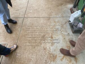 Mural Arts has collected original poetry from Sharswood residents and will incorporate it into the new sidewalks that are constructed in the community through an innovative sidewalk stamping process. Mural Arts is working closely with PHA, housing developers and their concrete contractors to hone the process of installing these poems; this winter a few pilot poems were installed a site that is still under construction.