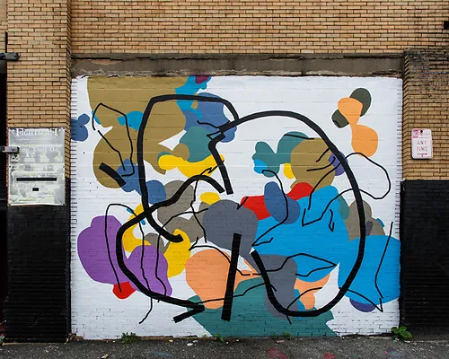 The Nelson Playground mural by Frito Bastien is a reenvisioning of a mural that was created at the same site in 2005. Like many of Bastien’s murals, this one exemplifies his Haitian roots and style. Born and raised in Haiti, artist Frito Bastien created his second Haitian landscape at Nelson Recreation Center after upgrades to the park included the resurfacing of the original wall. The new mural features cascading waterfalls, butternut trees, banana trees, apple trees, and a boy fishing. The landscape is inspired by Bastien’s memory and imagination. It also represents flora and fauna from all seasons. The mural provides natural beauty to viewers and makes the greenery of the park seem to extend well beyond what is usually expected in a city.