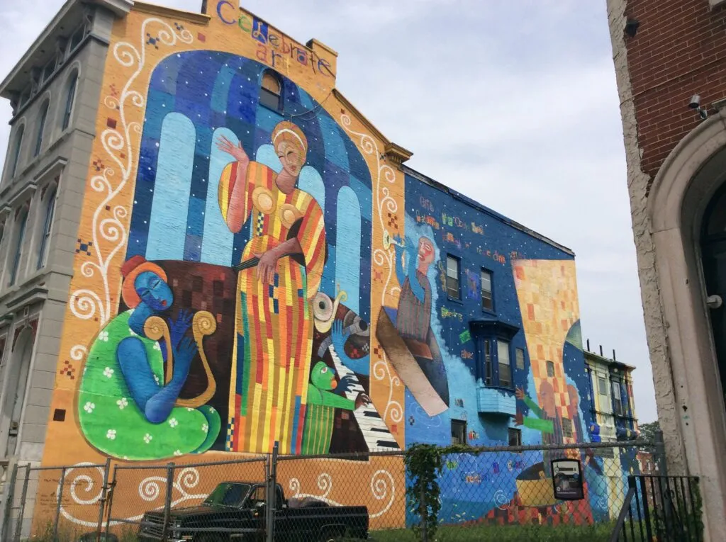 Art is Power by artist Danny Torres is located in the Hartranft neighborhood of Philadelphia, Pennsylvania. This mural celebrating Puerto Rican culture was created to support the Asociación Puertorriqueños en Marcha (APM) effort to develop an outdoor performance space. APM’s efforts in the area focused on social, economic, and ecological needs in the area bordered by Temple University and the American Street Empowerment Zone. APM’s development, revitalization and greening strategies has targeted the needs of the community comprised of both homeowners and renters. Their work has support the transformation of this urban locale into a bustling community, generating renewed interest in the area.