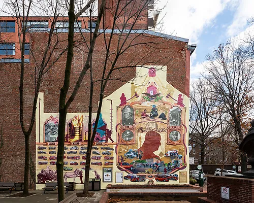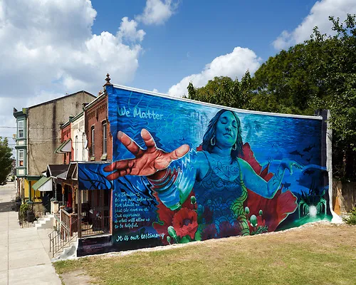 Eric Okdeh is a Philadelphia based muralist who has been creating public art since 1998. After receiving his BFA in painting from Tyler School of Art, Eric chose to focus on public art exclusively. Since 2002, in addition to his commissioned work, Eric has taught mural making classes to children and teens throughout the city as well as inmates at SCI Graterford Prison. Eric finds that the most successful murals provide a sense of inclusion and accomplishment among its participants, empowering them to take ownership in the work. Eric has over 80 public art commissions throughout Philadelphia, as well as murals in Wailuku, Hawaii, Seville, Spain, and Amman, Jordan. His work is featured in seven books about public and mural art.