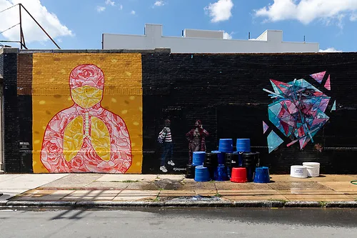Hammes volunteered in multiple roles at Prevention Point for two months to get to know their services, staff, participants, and needs. From there, Hammes developed and presented plans for the space, which were approved by MAP and PPP staff. Hammes and a group of assistants worked in the Love Lot for a year (taking a break during the coldest winter months) to execute the plans. Over twenty workshops were held during which PP clientele contributed to the process, helping to paint the fruit, sun, and memorial tile wall.
