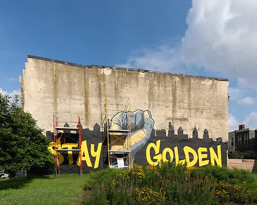 Lemon Hill Cycle by artist Alana Bograd is a response to the energy of the runners, walkers, bicyclists, and playground enthusiasts at nearby Fairmount Park. The mural consists of 76 total panels installed along the parapets on both sides of the Poplar Street bridge that connects the Fairmount neighborhood to East Fairmount Park near the historic Lemon Hill Mansion and Art Museum area of Philadelphia.