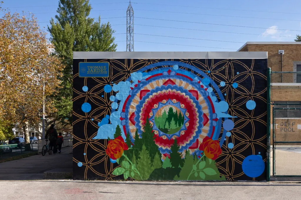 This mural features the portraits and letters of a group of Philadelphia-based high school students and their families who were a part of a class examining Black and Indigenous and Diasporic People of Color-led alternatives to community care and safety that don’t rely on the state (transformative justice, mutual aid, art, meditation, and community mental health) taught by Muralist Jess X. Snow and AR/VR Artist Frisly Soberanis over the summer of 2020. Guests included poet Mahogany L. Browne, filmmakers Shane McSauby and Derrick Woodyard, artist Kah Yangni, and musician Kyoko Takenanka; readings included Audre Lorde, ThÃch Nhất Hạnh, and Roxanne Dunbar-Ortiz.