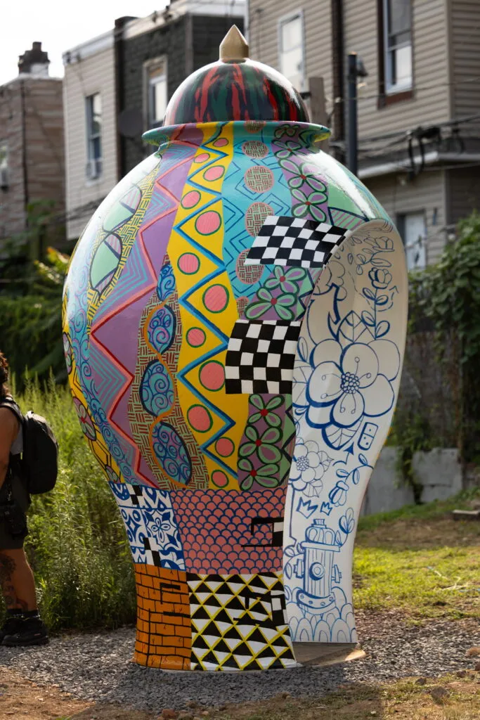 The project began with a field trip to Sherald’s studio by some of Mural Arts’ art education participants. The young people spent a day with Sherald, learning about her unique artistic practice, exploring costumes, and taking photographs together that would form the inspiration for the mural.