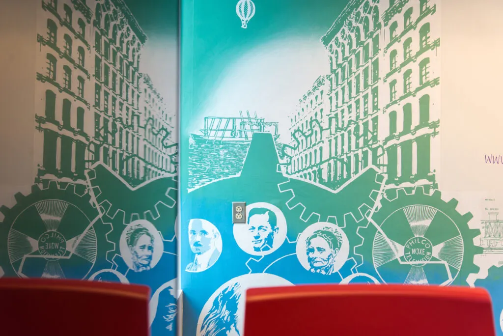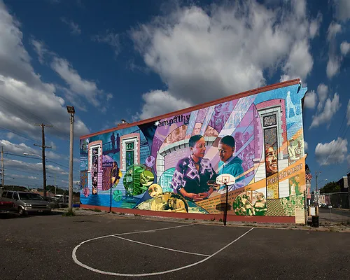 Eric Okdeh is a Philadelphia based muralist who has been creating public art since 1998. After receiving his BFA in painting from Tyler School of Art, Eric chose to focus on public art exclusively. Since 2002, in addition to his commissioned work, Eric has taught mural making classes to children and teens throughout the city as well as inmates at SCI Graterford Prison. Eric finds that the most successful murals provide a sense of inclusion and accomplishment among its participants, empowering them to take ownership in the work. Eric has over 80 public art commissions throughout Philadelphia, as well as murals in Wailuku, Hawaii, Seville, Spain, and Amman, Jordan. His work is featured in seven books about public and mural art.